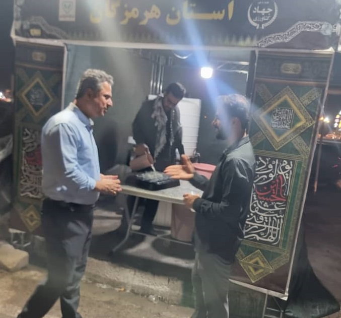 مدیرکل دامپزشکی هرمزگان با حضور در میان خادمان موکب شهدای دامپزشکی، از نزدیک شاهد شور خدمت‌رسانی به زائران اربعین حسینی بود؛جایی که عشق حسین (ع) در گرمای طاقت فرسا برای تهیه و توزیع شربت خنک در گرمای سوزان، تلاشی برای خدمت به زائران ابا عبدالله (ع)، لبخند خادمان و عشق به اباعبدالله(ع) در کنار هم، صحنه‌هایی ناب از میزبانی را رقم زده است.