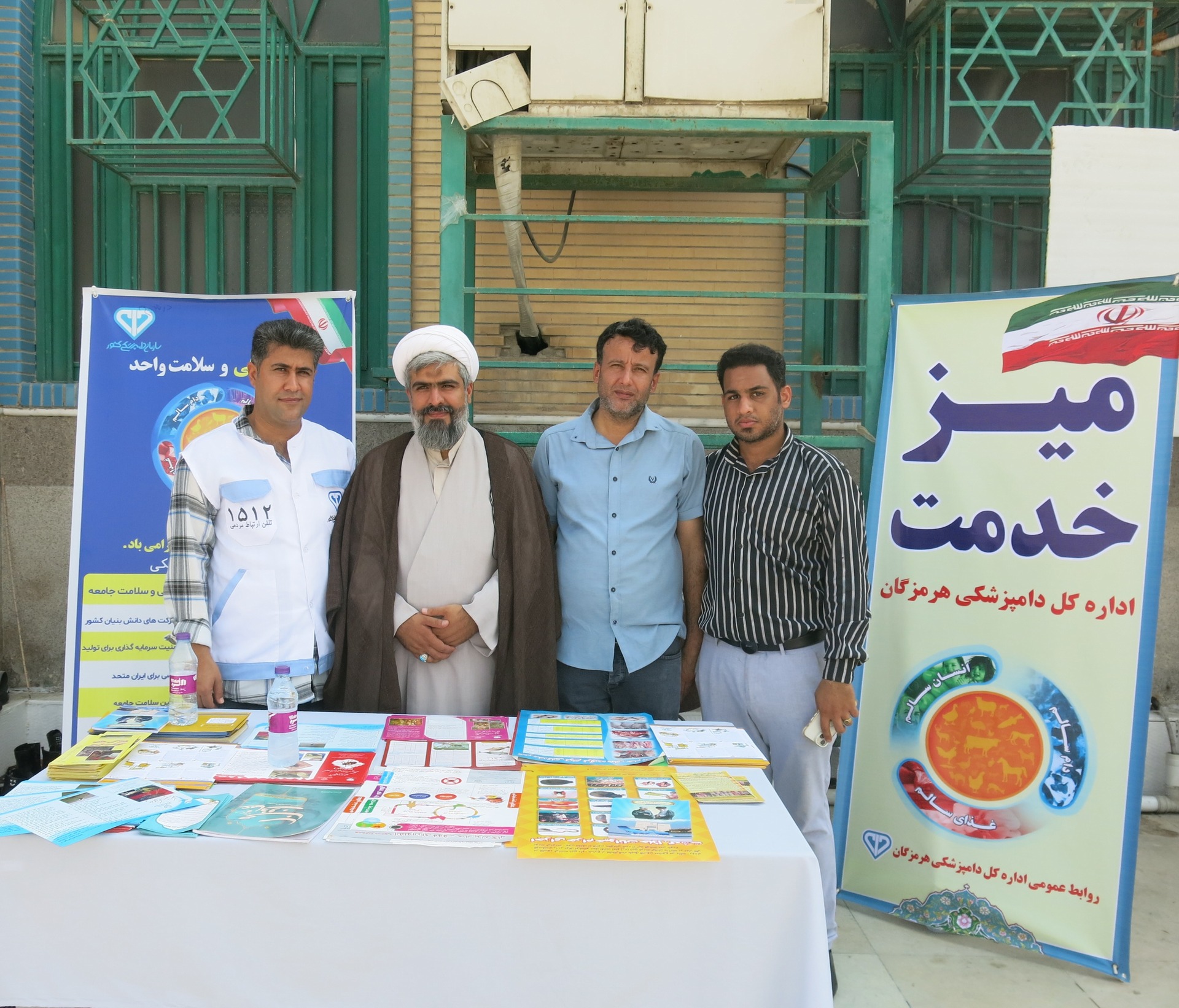 به منظور تبیین خدمات سلامت محور دامپزشکی و پاسخگویی مسؤولانه در راستای حفظ بهداشت عمومی و ارتقاء امنیت غذایی و سلامت شهروندان و بهره برداران حوزه دامپزشکی، میز خدمت دامپزشکی همزمان با سخنرانی مدیر کل دامپزشکی استان هرمزگان پیش از خطبه های نماز جمعه برپا شد و پرسنل دامپزشکی ضمن شرکت در نماز عبادی سیاسی جمعه و تبیین فعالیت های سلامت محور دامپزشکی به جامعه، پاسخگویی به سؤالات شهروندان را انجام دادند.