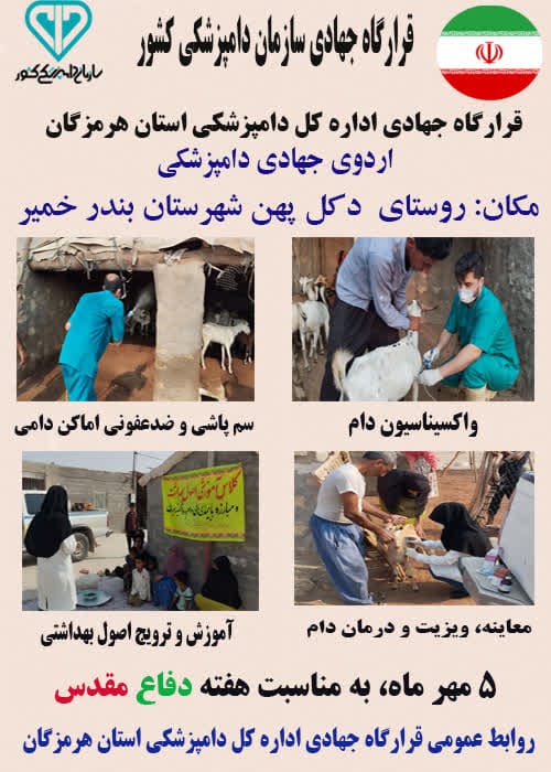 قرارگاه جهادی اداره کل دامپزشکی استان هرمزگان به مناسبت هفته دفاع مقدس 1404/07/05 - 12:09 - تعداد بازدید: 21 - کد خبر : 345540 - گروه خبری : خبر,اخبار اسلایدر - تعداد نظرات : 0 اردوی جهادی دامپزشکی برای خدمات رسانی به دامداران روستای دکل پهن شهرستان بندر خمیر زمان: پنجم مهرماه 1404