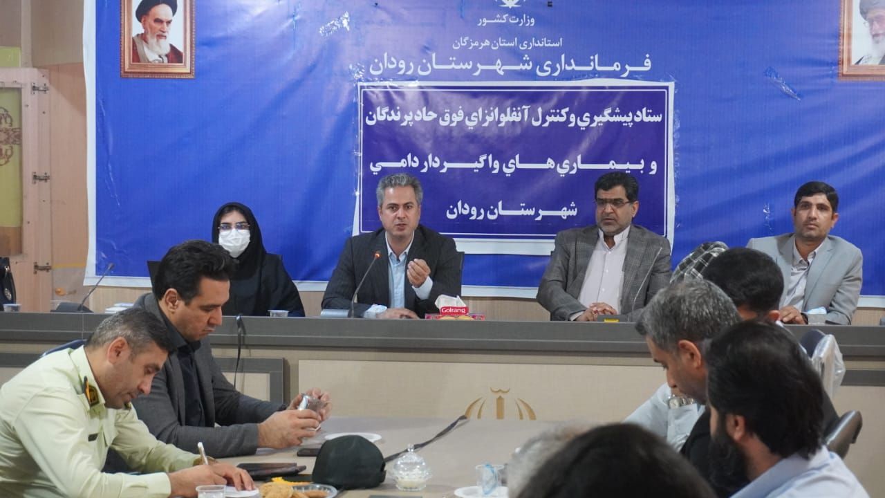 به گزارش روابط عمومی اداره دامپزشکی شهرستان رودان، دکتر مصطفی فخر آبادی پور، مدیرکل دامپزشکی استان هرمزگان هدف از برگزاری این جلسه را چنین تشریح کرد: تشکیل قرارگاه تب برفکی در شهرستان رودان در پی دستور احمد نفیسی، معاون استانداری هرمزگان و با هدف کنترل بیماری در شهرستان های پر خطر انجام شده است.